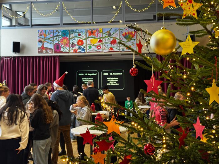 Am Freitag, den 28.11.2025, hüllten wir die Hallen der RKS wieder einmal in vorweihnachtliche Stimmung. Egal ob mit herzhaften Gerichten vom Grillstand oder etwas Süßem von unserem Mandel- oder Crêpestand – am Ende gab es für jeden das Richtige, um sich den Bauch vollzuschlagen. Wen der Durst trieb, der konnte dieses Jahr neben unserem klassischen Angebot, dem Punsch, zudem einen unserer Weihnachts-Cocktails kosten. Außerdem boten wir dieses Jahr auch wieder Nepalkalender sowie unsere neuen, köstlich feinen Pralinen an.