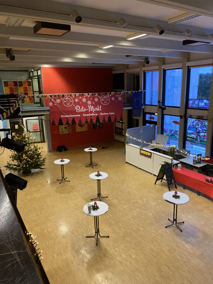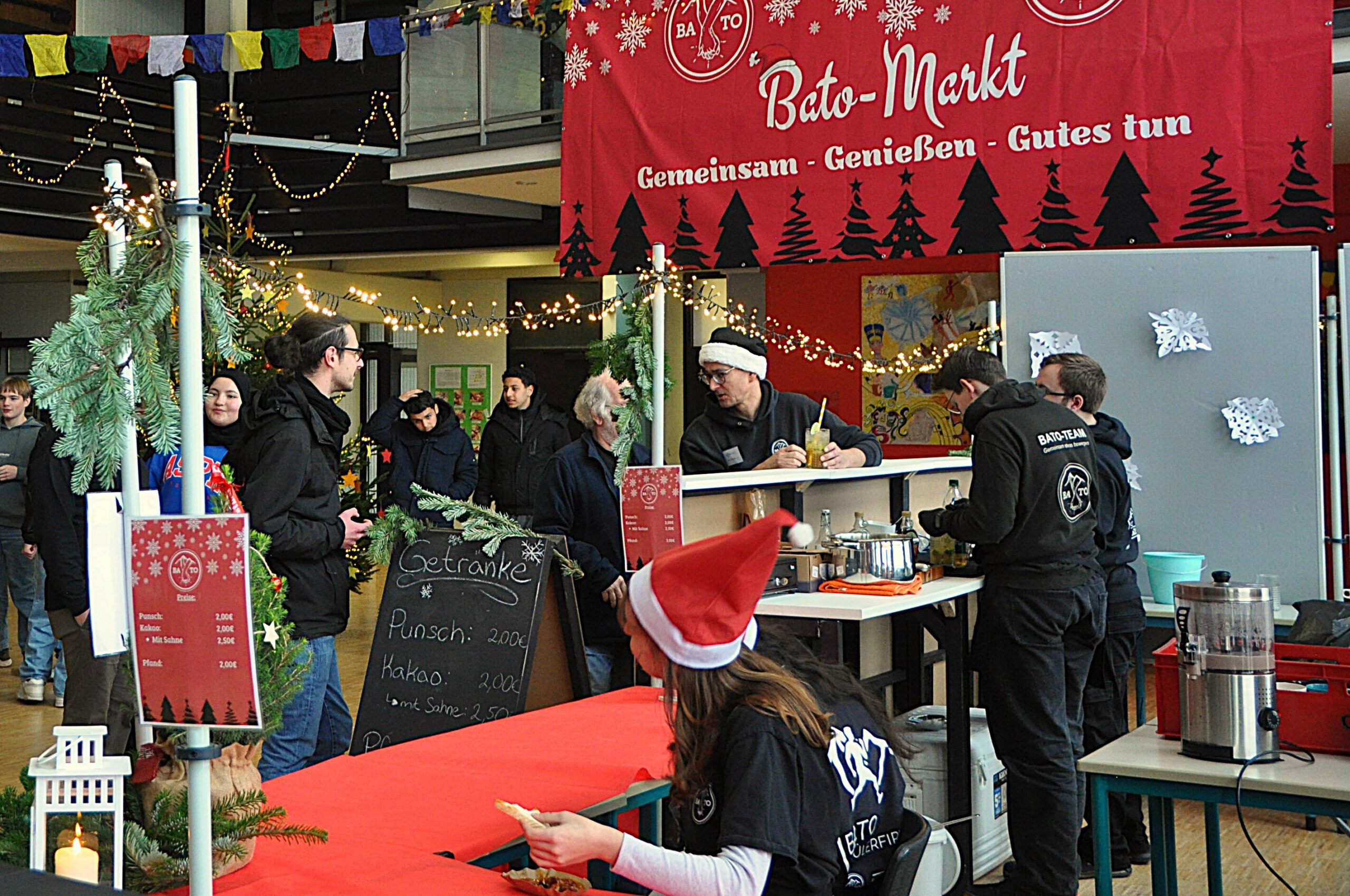 Wie in jedem Jahr kamen die verschiedenen Jahrgänge zu festgelegten Zeiten zwischen 8:30 und 13:10 Uhr zum Markt. Ab 13:10 Uhr hatten auch Gäste von außerhalb die Möglichkeit, unseren Markt bis 14:00 Uhr zu besuchen. Die Planung und Organisation der Stände lag bereits Wochen im Voraus in den Händen der Bato-Mitglieder, die auch die Betreuung vor Ort übernahmen. Festliche Dekorationen sowie eine gute Stimmung durch Weihnachtshits ergänzten unseren Markt wieder einmal perfekt. Der Gewinn, der durch Ihre großzügigen Ausgaben erzielt wurde, wird der Bato-Schülerfirma zugutekommen und dabei helfen, andere Projekte wie den Nepallauf neben dem Batomarkt zu finanzieren.